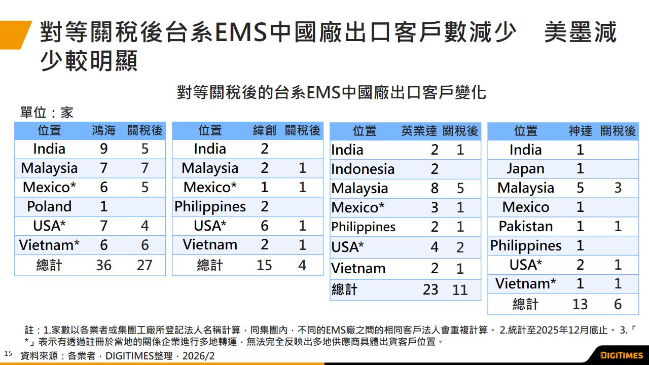 對等關稅後的台系伺服器EMS業者中國工廠供應鏈分析 轉向當地與東協市場客戶為主