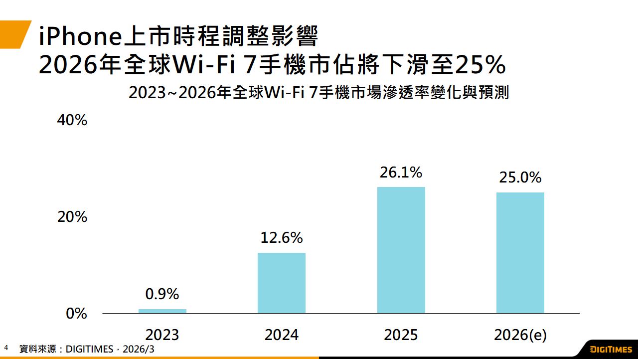 2026年Wi-Fi 7手機受限成本與蘋果調整上市時程 市佔率將下滑至25%