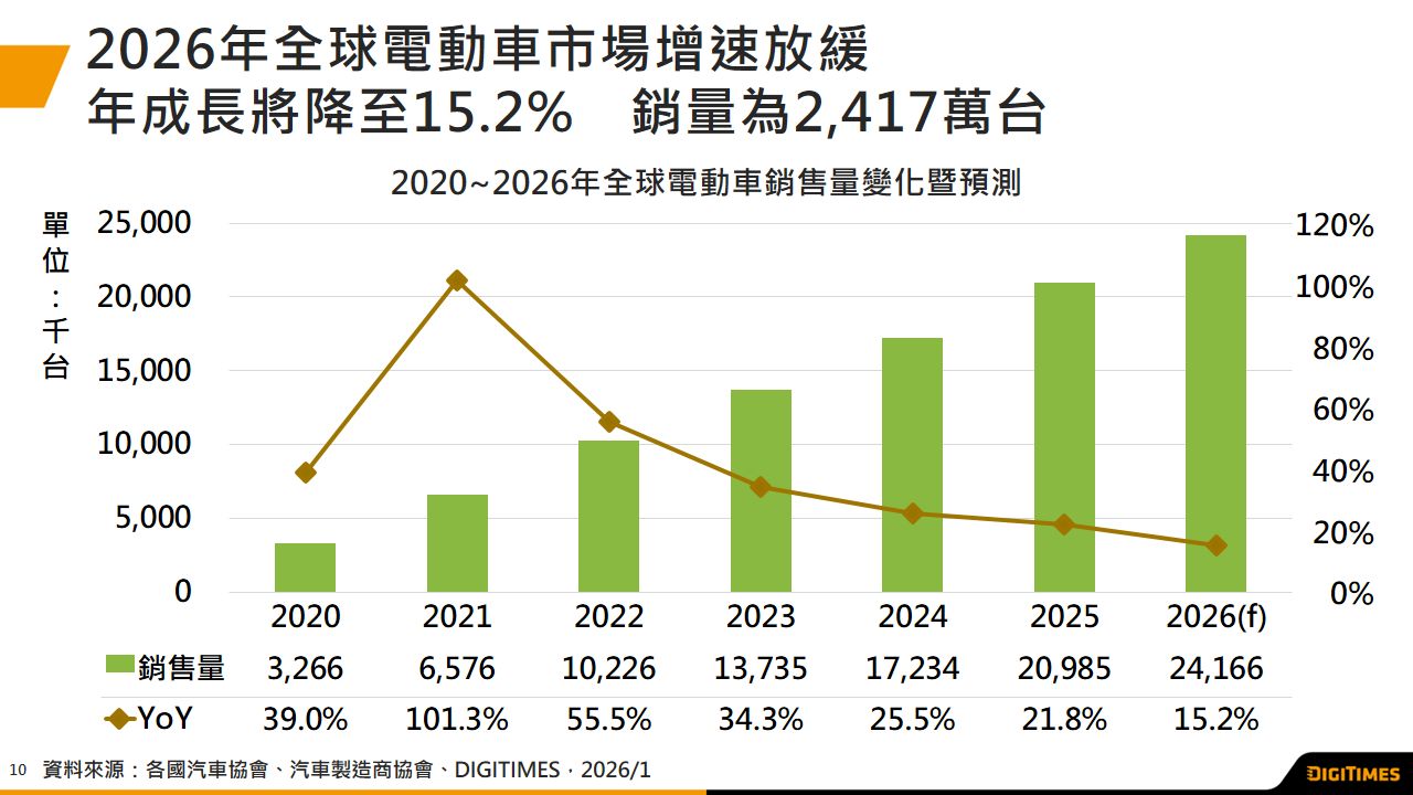 2026年EV動能收斂、全球車市承壓 三大市場分化加劇 預估年增15.2%