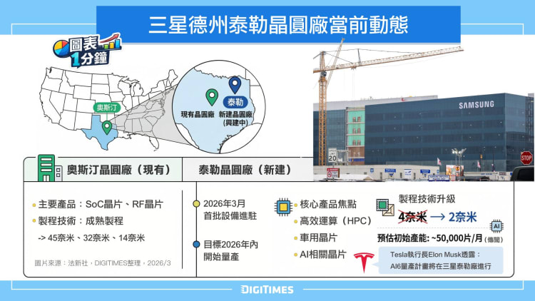 載板事業部獲利能力持續改善。韓媒最新消息指出,三星電子(Samsung Electronics)將在2027年於美國泰勒(Taylor)廠量...