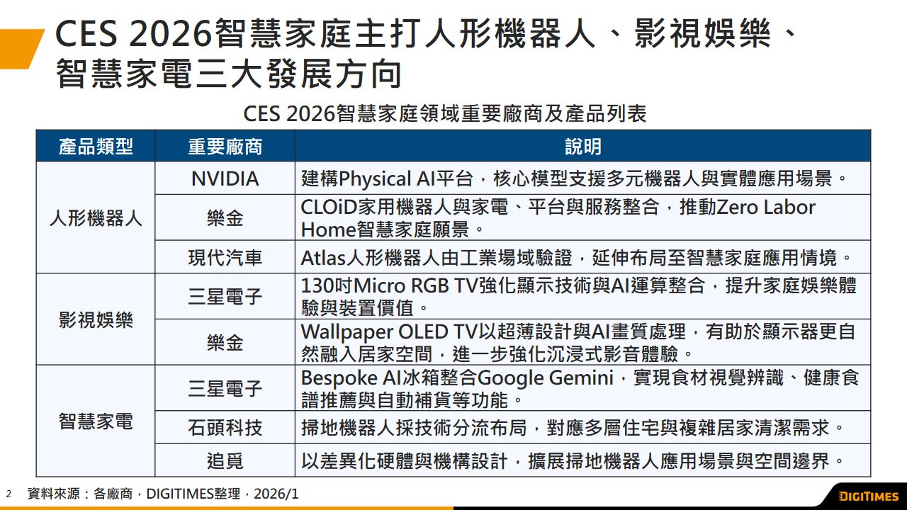 CES 2026智慧家庭聚焦三大應用 Physical AI成指標性趨勢