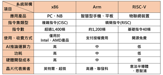 邊緣AI推論運算應用產品朝三大方向發展,一為x86架構的PC與NB、二為Arm架構的手機與平板、三為Arm/ RISC-V架構的物聯網裝置。