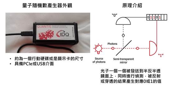 量子真隨機數產生器是以隨機數來加強安全性的工具。之所以稱為「真」隨機數產生器,是相對於被廣泛使用、但卻缺乏安全的「偽隨機數」(pseudo-randomness)產生技術。