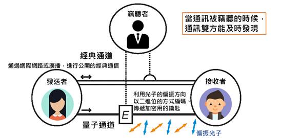 量子金鑰分發是基於量子物理學的基本原理,包括量子糾纏和不可複製定理(No cloning theorem),以防止竊聽和破解,此可以解決國防、金融、政務、商業等領域所面臨的資訊安全問題。