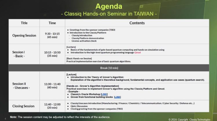 全球量子軟體技術領導者、以色列商Classiq Technologies Ltd.宣布,將於2026年3月11日在台大醫院國際會議中心舉辦「Classi...
